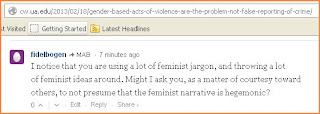 But what does it mean to say that "men are the problem"? What is this statement really talking about? Which "problem" does it refer to, exactly? I have implied that this idea lies at the root of a world-view. A paradigm. But how can we spot it in action? What signs or tracks does it leave?